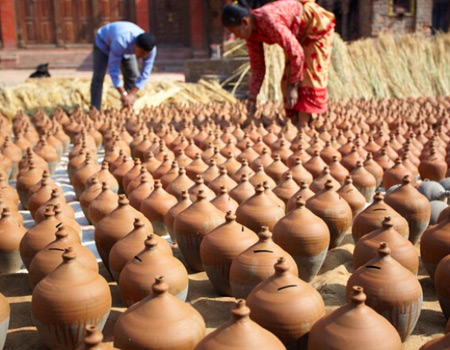 Generally, Bhaktapur attracts tourist with its charming architectures and traditional arts. As one medieval city-state, it enjoys time-honored and well-preserved artworks including palaces, temples, yards etc. The brick-red is the dominant hue of the ancient city of Bhaktapur. The old red bricks, chestnut woodcarvings, dense temples and brick stupas show the featured style of Bhakatpur. From Bahaktapur, you are able to take a glimpse of the architectures in Mid Ages. Bhaktapur is a recommended place for wandering around. One is sure to feel like travelling back into the past while walking along the Bhaktapur thoroughfares, squares and streets. You will also suck in the unique local culture atmosphere. Craftsman paint colorful clothes, square are full of earthen pots and kilns, locals gather together to talk and play card games...